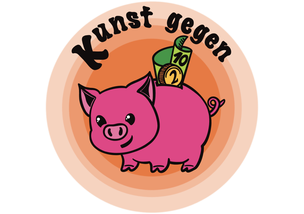 Das Geld aus den Sparschweinen geht zu 100% an die Künstler:innen. Wer am meisten Geld im Schwein hat, ist Kapitalistensau des Monats.